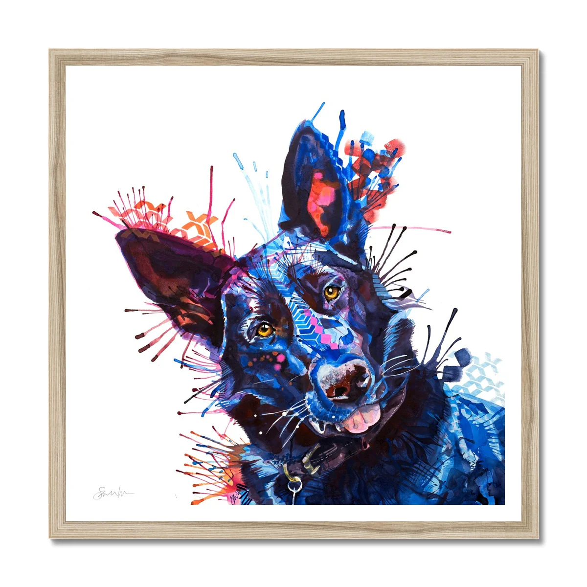 Bring some happiness to your room with this framed colourful dog print.